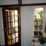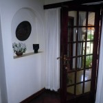 Hoveddøren er klart placeret midt foran indkørslen, og så snart man er inde overvældes man af forskellige rum og kig. Foran en ligger en terrasse og bagved den, haven. Til venstre for indgangen ses ind i spisestuen og til højre ind i dagligstuen. Dagligstuen har, ud over døren til entreen, sin egen glasdør til terrassen; en flot kamin - englænderne samlede sig altid omkring kaminen; vinduer ud til indkørslen og et stort buet vindue ud - også kaldet et "bay window" mod haven. Buede vinduer trækker ligesom udsigten til sig. Jeg mærkede med det sammen, at det var et værelse, som det var godt at være i. Spisestuen på venstre side af indgangen havde ligesom dagligstuen en glasdør ud til terrassen, så man i princippet kunne se hen langs indersiden af huset fra spisestue via terrasse til dagligstue. I forlængelse af spisestuen var et lille kontor fyldt med reoler og med et stort cirkelrundt vindue til haven - et godt sted at arbejde!